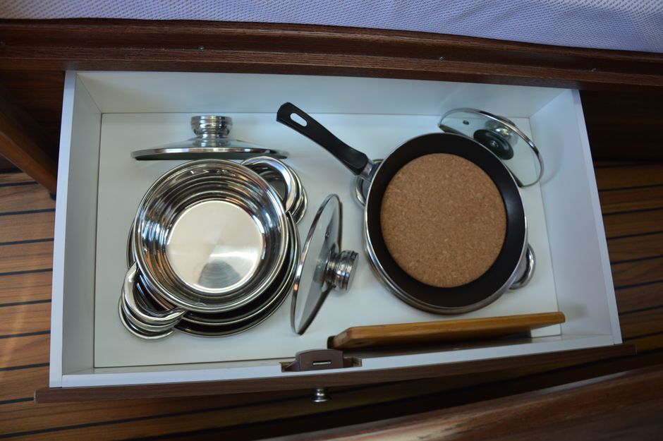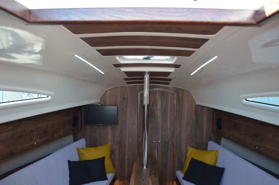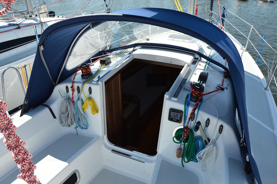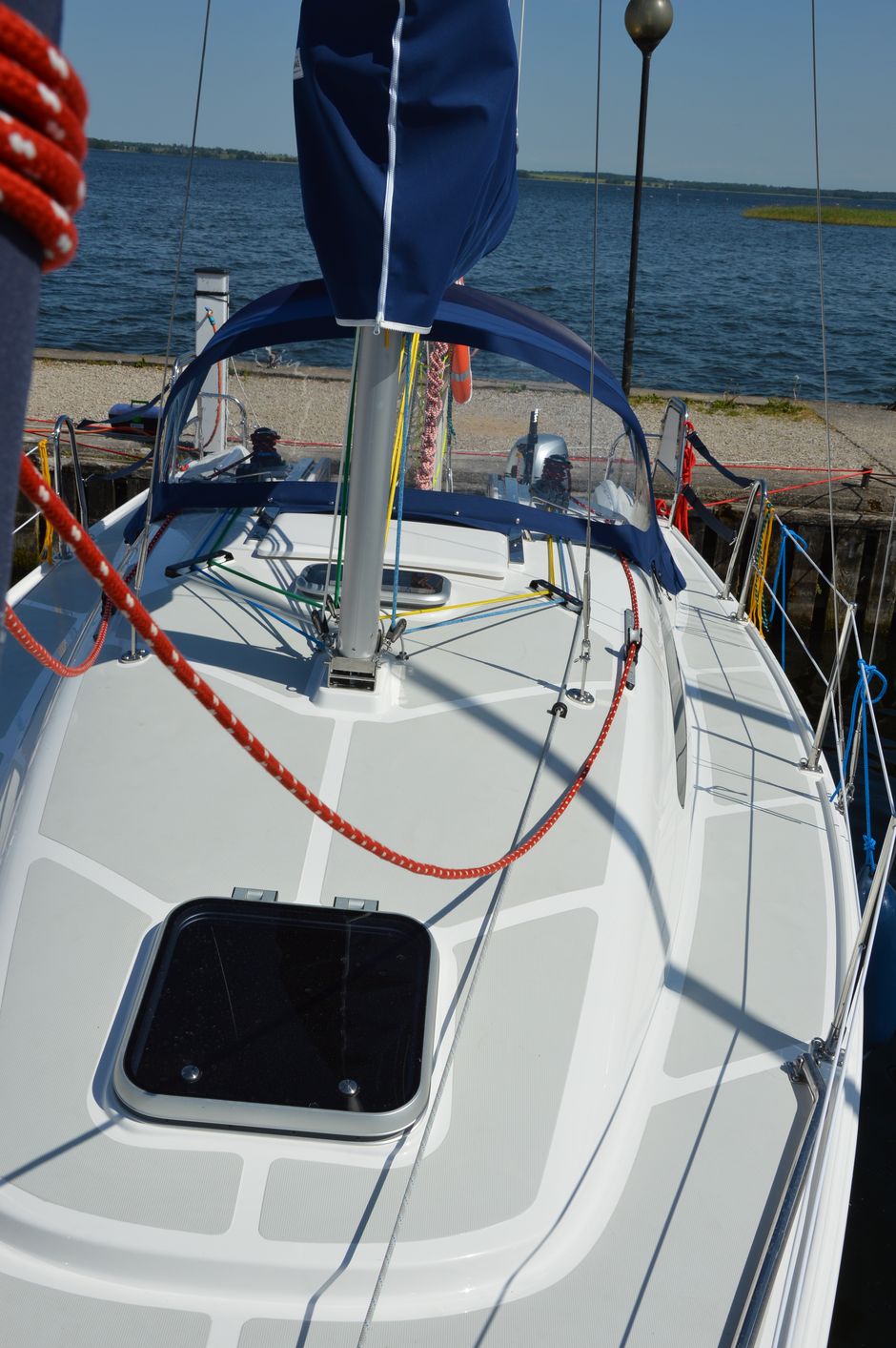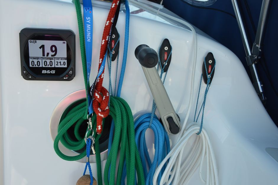 Wyposażenie dodatkowe: bramka do kladzenia masztu, sztywny sztag, lazzy jack, instalacja wody - zbiornik, prysznic w kokpicie, radio, mp3, TV, lodówka, ogrzewanie, instalacja 230 V, oświetlenie kokpitu, echosonda