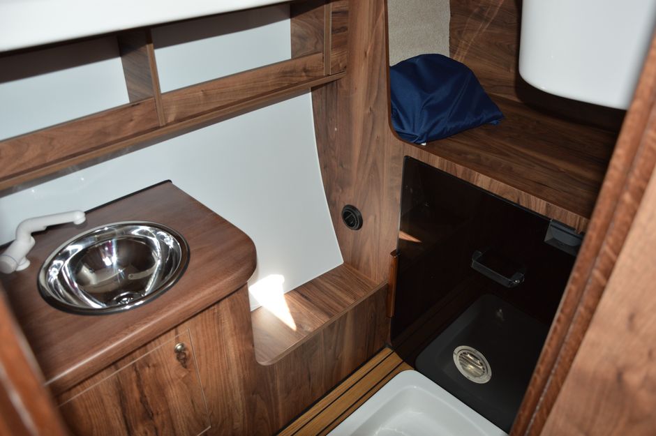 Atrakcyjna, dynamiczna sylwetka jachtu połączona z ergonomicznym ukształtowaniem pokładu oraz dopracowanymi detalami jest odzwierciedleniem dyskretnej elegancji.Podwyższona stateczność poprzeczna pozwala na zwiększenie powierzchni ożaglowania i prędkości przy słabszych wiatrach dając również poczucie komfortu i bezpieczeństwa w trudniejszych warunkach. Kształt kadłuba został zaprojektowany w sposób umożliwiający osiągnięcie wysokich prędkości oraz manewrowości i lekkości prowadzenia dające prawdziwą radość z żeglugi. Zamieszczone zdjęcia są zdjęciami poglądowymi. Jacht będzie wyglądał identycznie jak Antilia 26CC - Martinique. Wyposażony dodatkowo w echosonde B&G i prysznic w kokpicie.