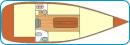 Duża stateczność jachtu zapewnia właściwe bezpieczeństwo załogi oraz umożliwia efektywną żeglugę na ostrych kursach. Jego atuty to przestronne wnętrze, obszerny kambuz, wydzielona kabina WC.